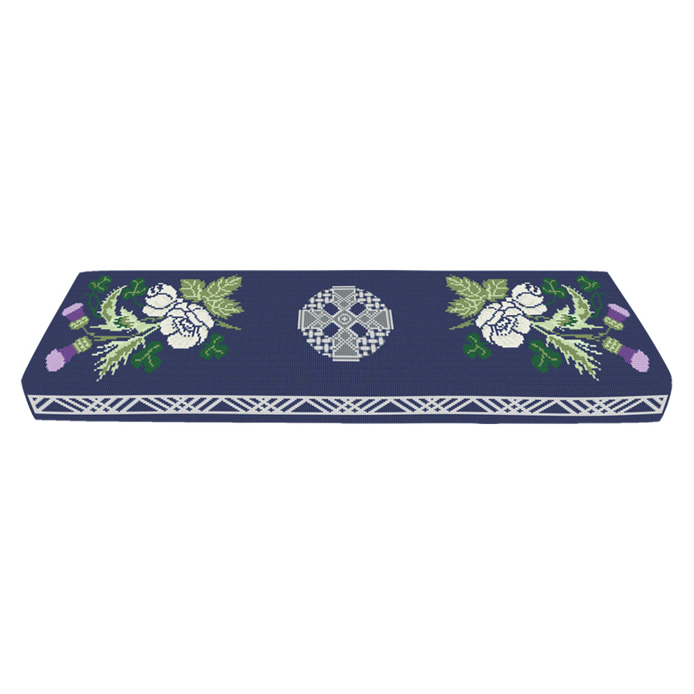Cross stitch kneeler kit in Dalgarven design on 7.5 stitch per inch canvas.